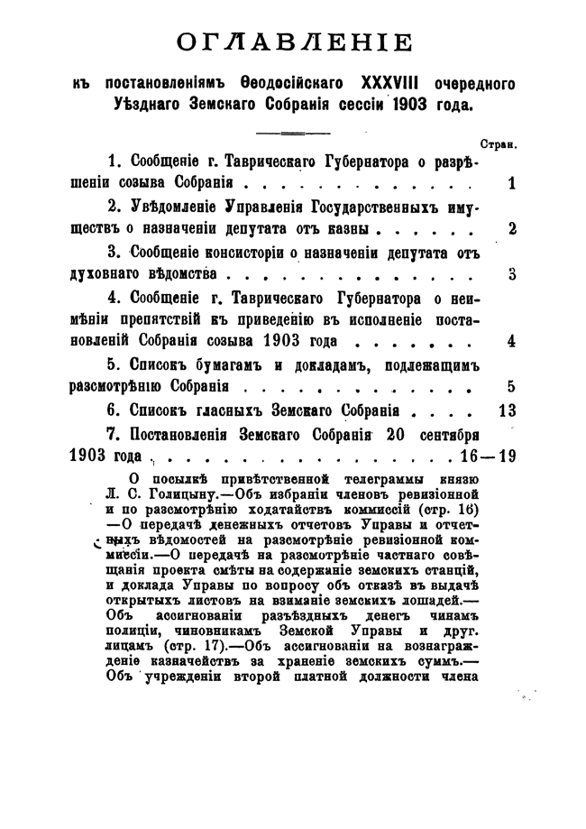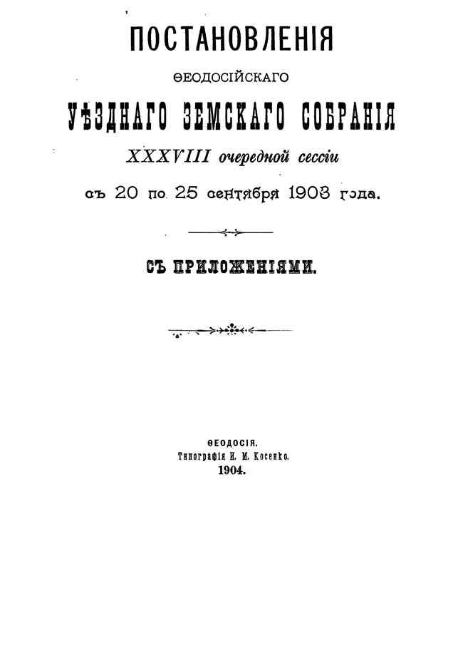 Постановления Феодосийского уездного земского собрания XXXVIII очередной сессии с 20 по 25 сентября 1903 года