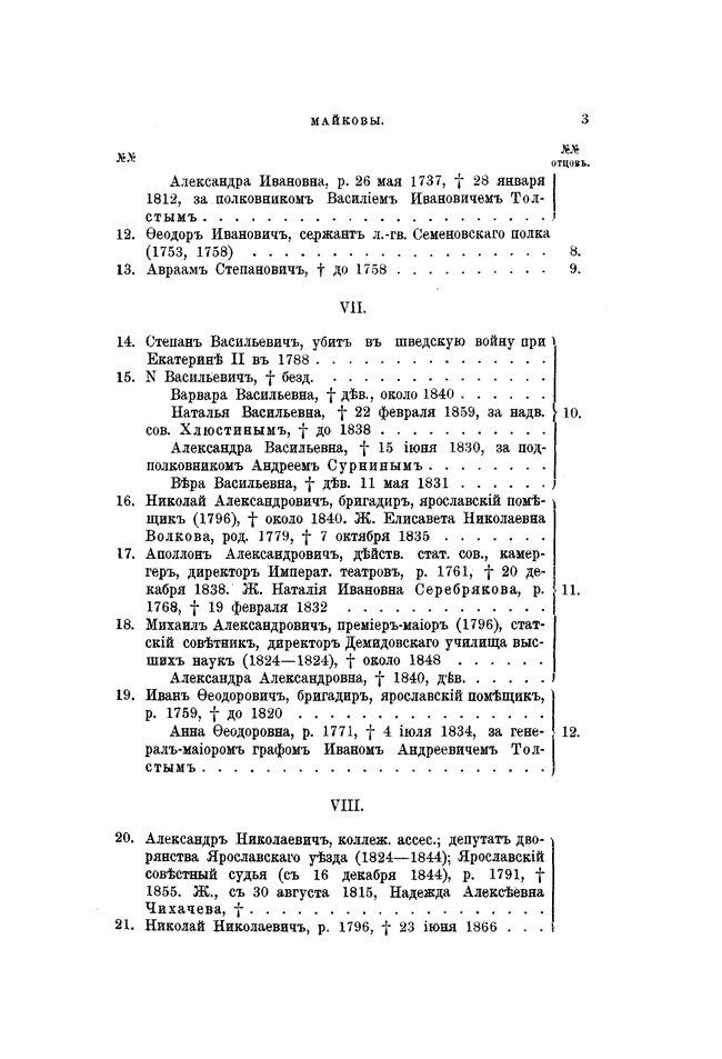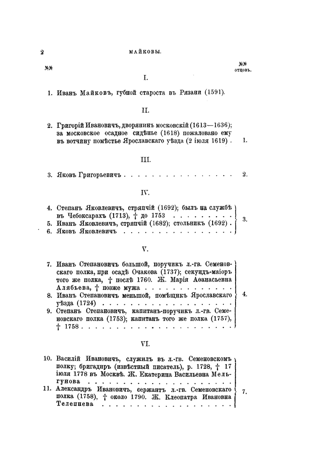 Сборник состоит из двух томов и включает в себя родословные 136 родов русского дворянства. Родословные представлены в виде поколенных росписей, включающих также супругов представителей рода и краткие биографические справки. Достаточно большое количество персон в сборнике являлись видными военными и государственными деятелями, известными представителями литературы и искусства.
