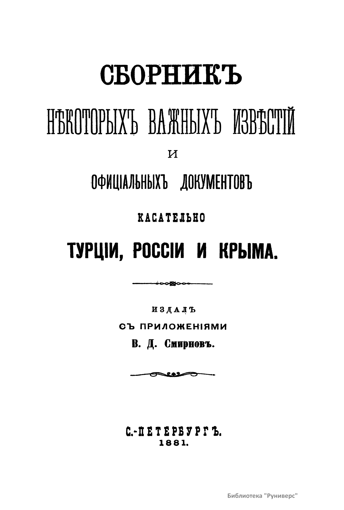 Сборник некоторых важных известий и официальных документов касательно Турции, России и Крыма