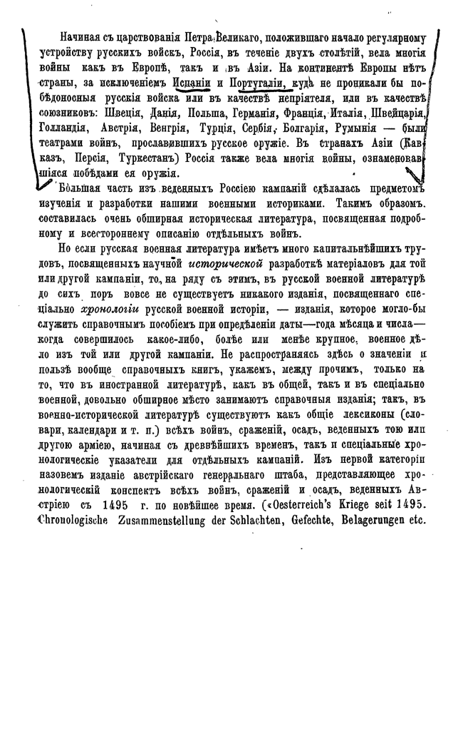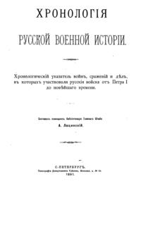 Хронология русской военной истории. Хронологический указатель войн, сражений и дел, в которых участвовали русские войска от Петра I до новейшего времени