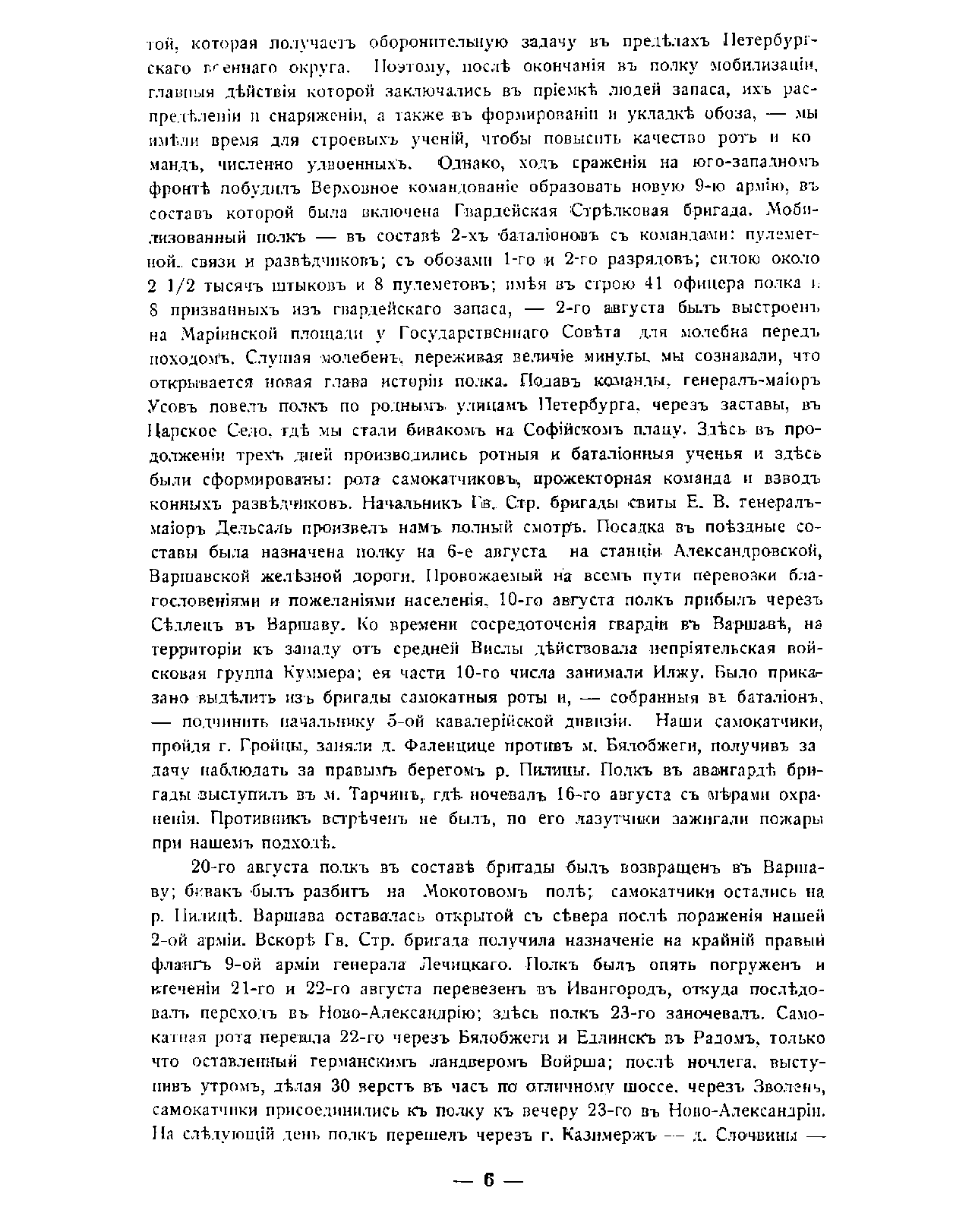 Документальное описание боевых действий полка и знаменательных исторических событий, связанных с ним, за период 1914 – 1917 годов. Приведены поименные списки офицеров, награжденных орденами Св.Георгия и Георгиевским оружием, убитых и умерших от ран.