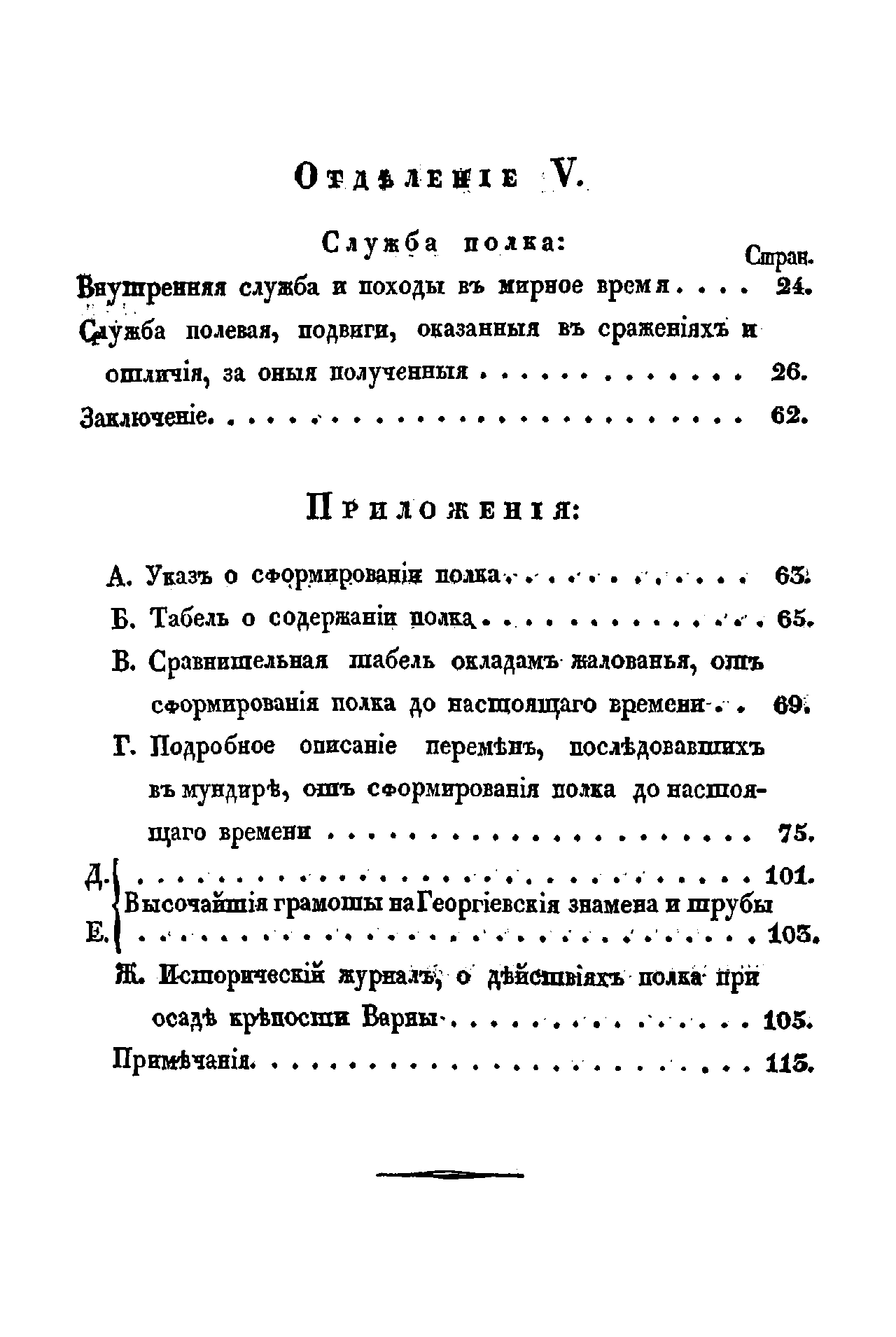 Документальное описание боевых действий полка и знаменательных исторических событий, связанных с ним, за период 1730 – 1830 годов.