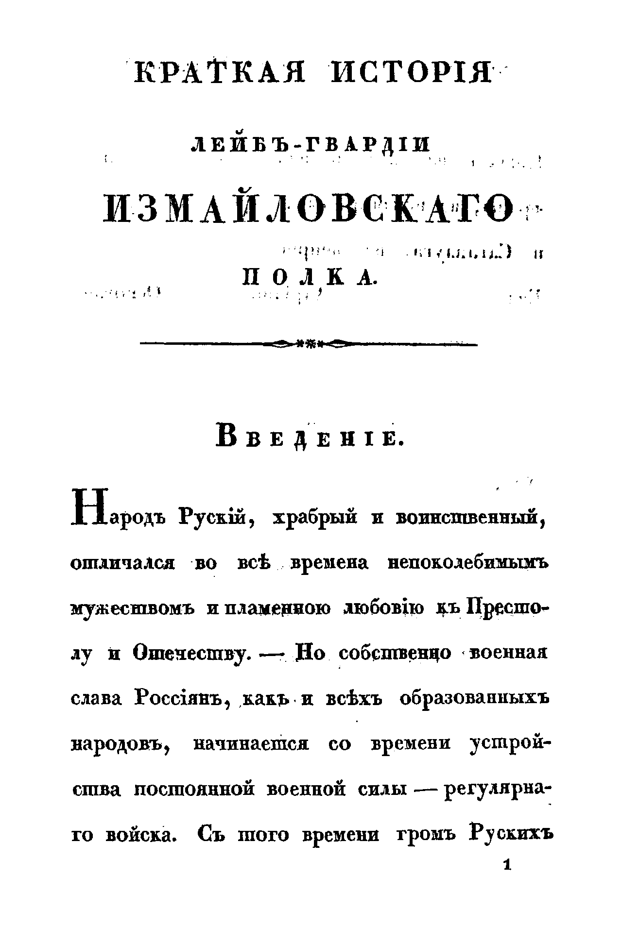 Краткая исторiя Лейбъ-гвардiи Измайловскаго полка