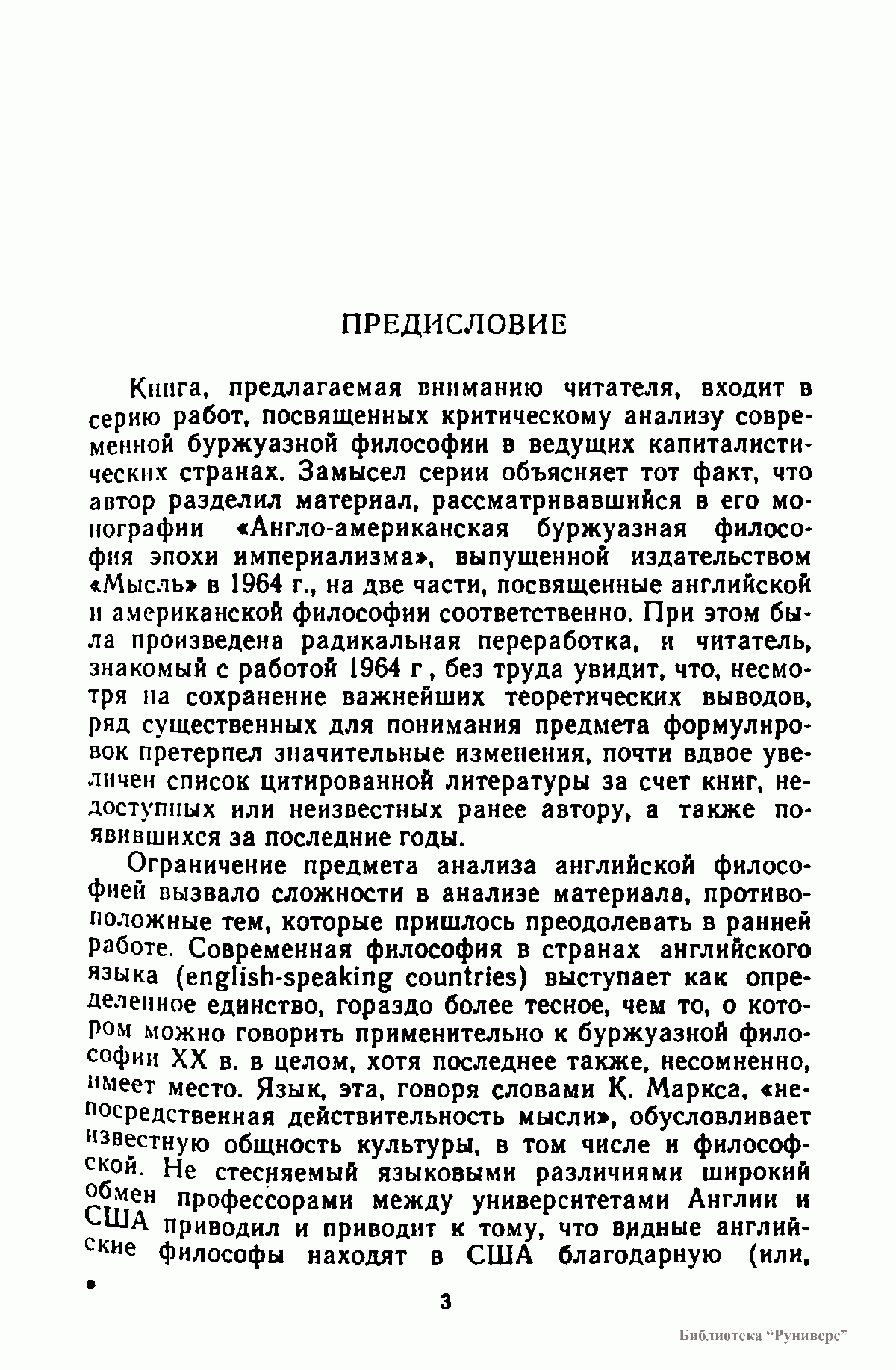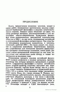 Настоящая книга представляет собой изложенне и критический анализ с позиции "марксистко-ленинской методологии" (единственно приемлемой в СССР) основных направлений британской буржуазной философии с конца XIX в. до второй половины XX в. Основное вннманне в работе известного историка философии уделяется взглядам английских буржуазных философов иа проблемы теории пoзнання и онтологии. Богатая фактическим материалом и интересными наблюдениями над эволюцией буржуазного мировоззрения эа последнне сто лет.