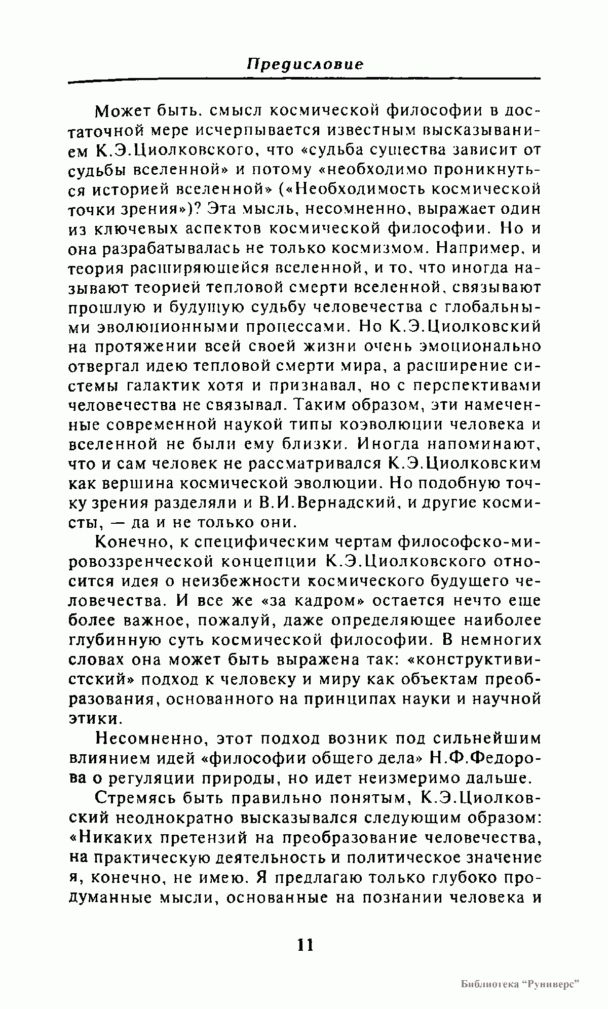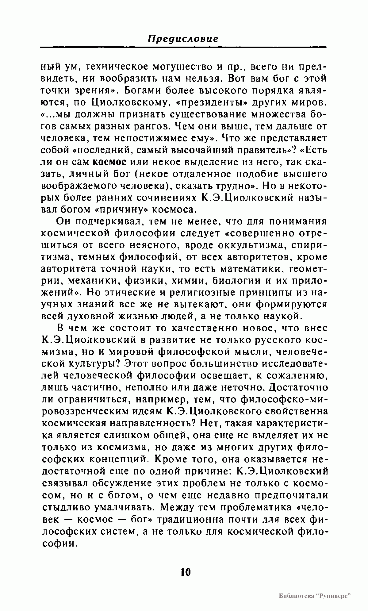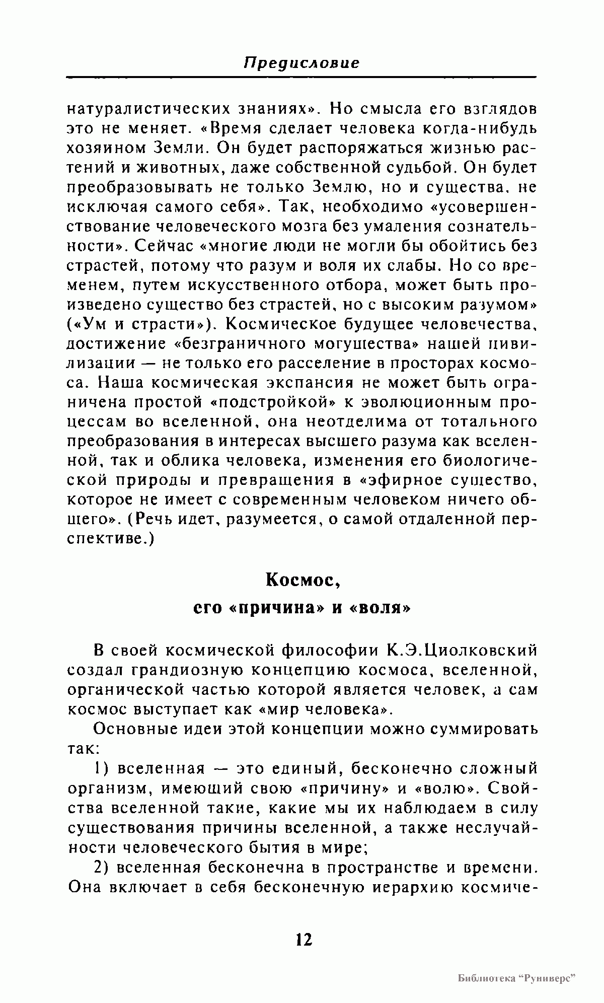 "Цель моей статьи, между прочим, — разбить ложное мнение о моих работах, как о мистических», чтобы понять меня, вы должны совершенно отрешиться от всего неясного, вроде оккультизма, спиритизма, темных философий, от всех авторитетов, кроме авторитета точной науки, то есть математики, геометрии, механики, физики, химии, биологии и их приложений." (К.Э.Циолковский) В своих работах выдающийся ученый, изобретатель, основоположник современной космонавтики К.Э.Циолковский, пытается найти ответ на вопрос: «Есть ли высшие силы, есть ли первопричина всех вещей и явлений?» И уверенно, доказательно, безо всякой мистики, основываясь только на данных точной науки, отвечает: «Конечно, есть, это сама Вселенная». Как же относится она к человеку? Как относится к своим избранным, отмеченным печатью гения? Как изменить жизнь человека и общества, чтобы не противиться воле вселенной — размышления об этом вы найдете в этом сборнике всех основных статей К.Э.Циолковского.