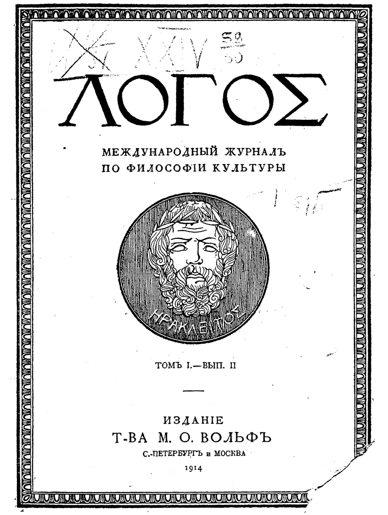 вышли из журнала. В русской версии «Логоса» участвовали и иностранные философы: Г. Зиммель, Г. Риккерт, Р. Кронер, Г. Вёльфлин, B. Виндельбанд, Н. Гартман, П. Наторп, Б. Кроче, Э. Бутру.