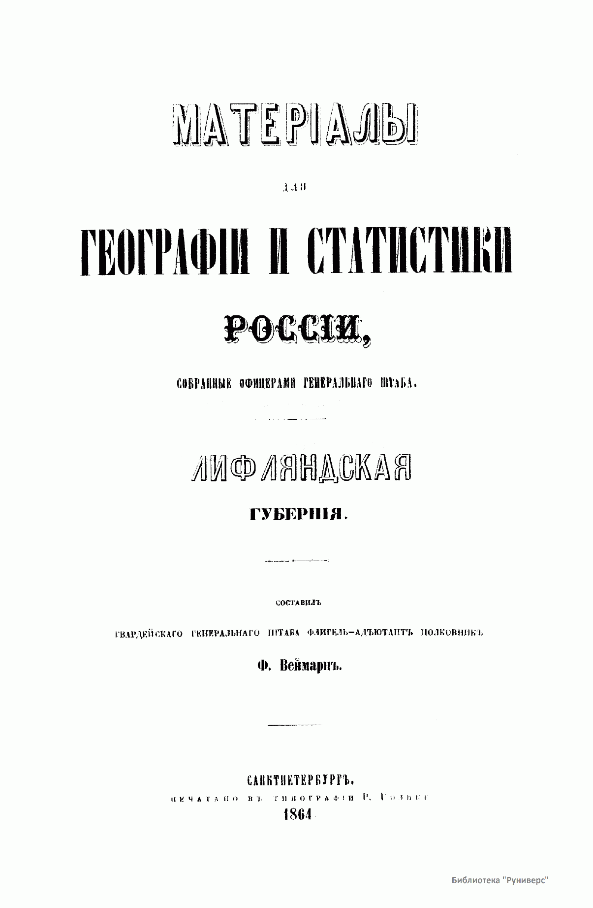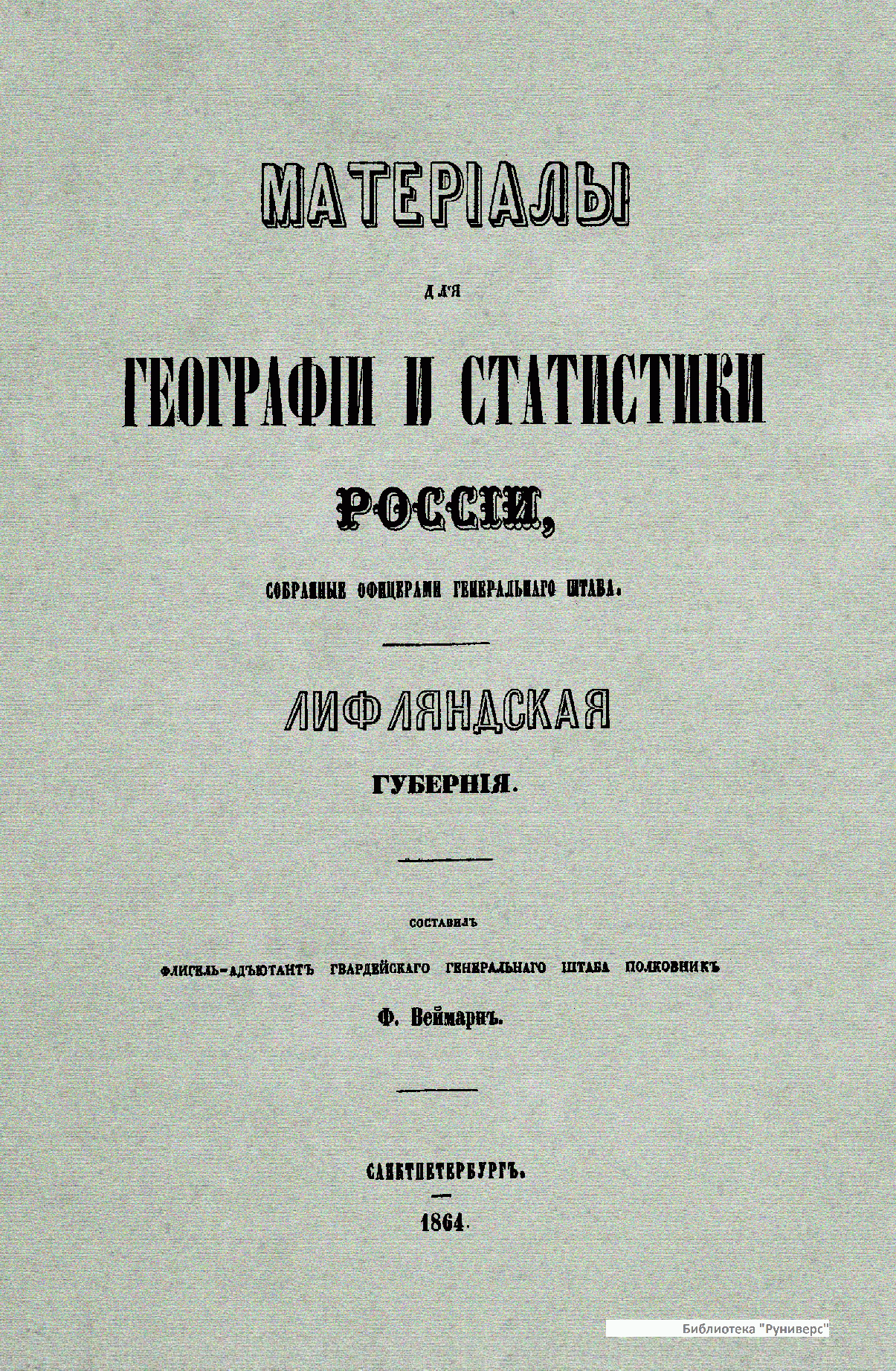 Матерiалы для географiи и статистики Россiи, собранные офицерами Генеральнаго штаба. Лифляндская губернiя