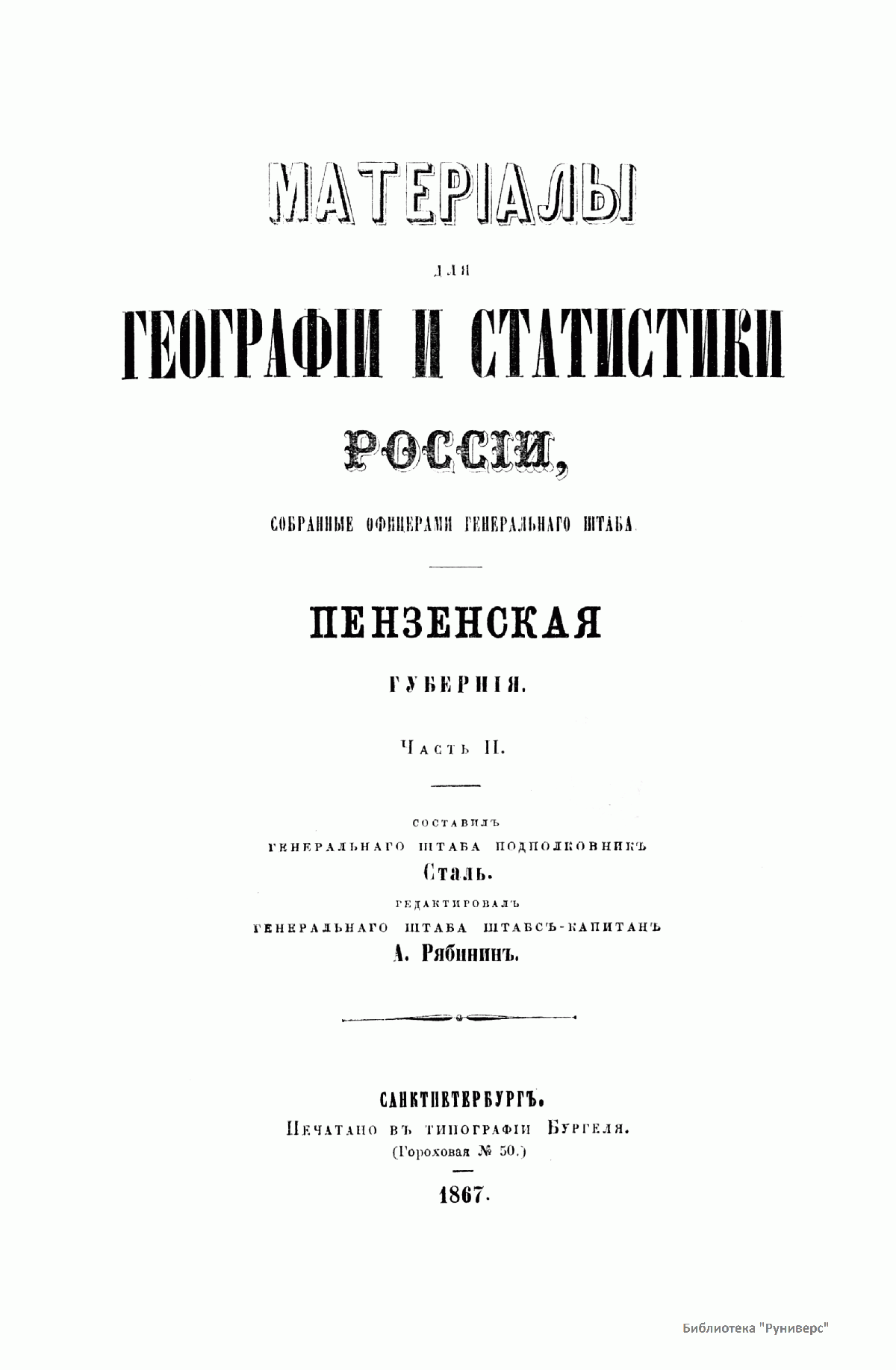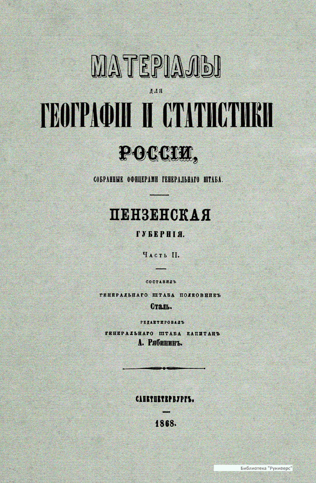 Матерiалы для географiи и статистики Россiи, собранные офицерами Генеральнаго штаба. Пензенская губернiя. Часть 2
