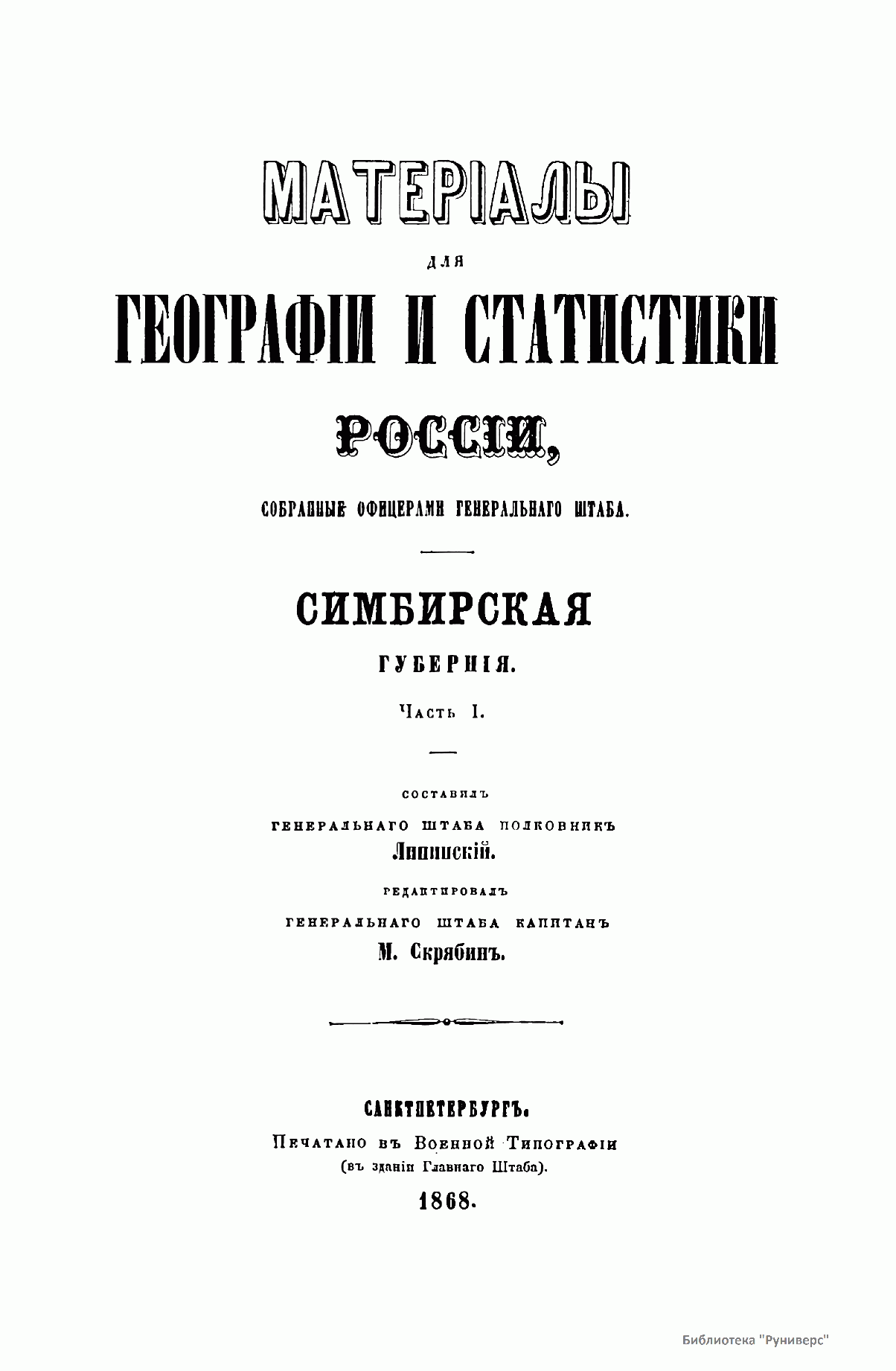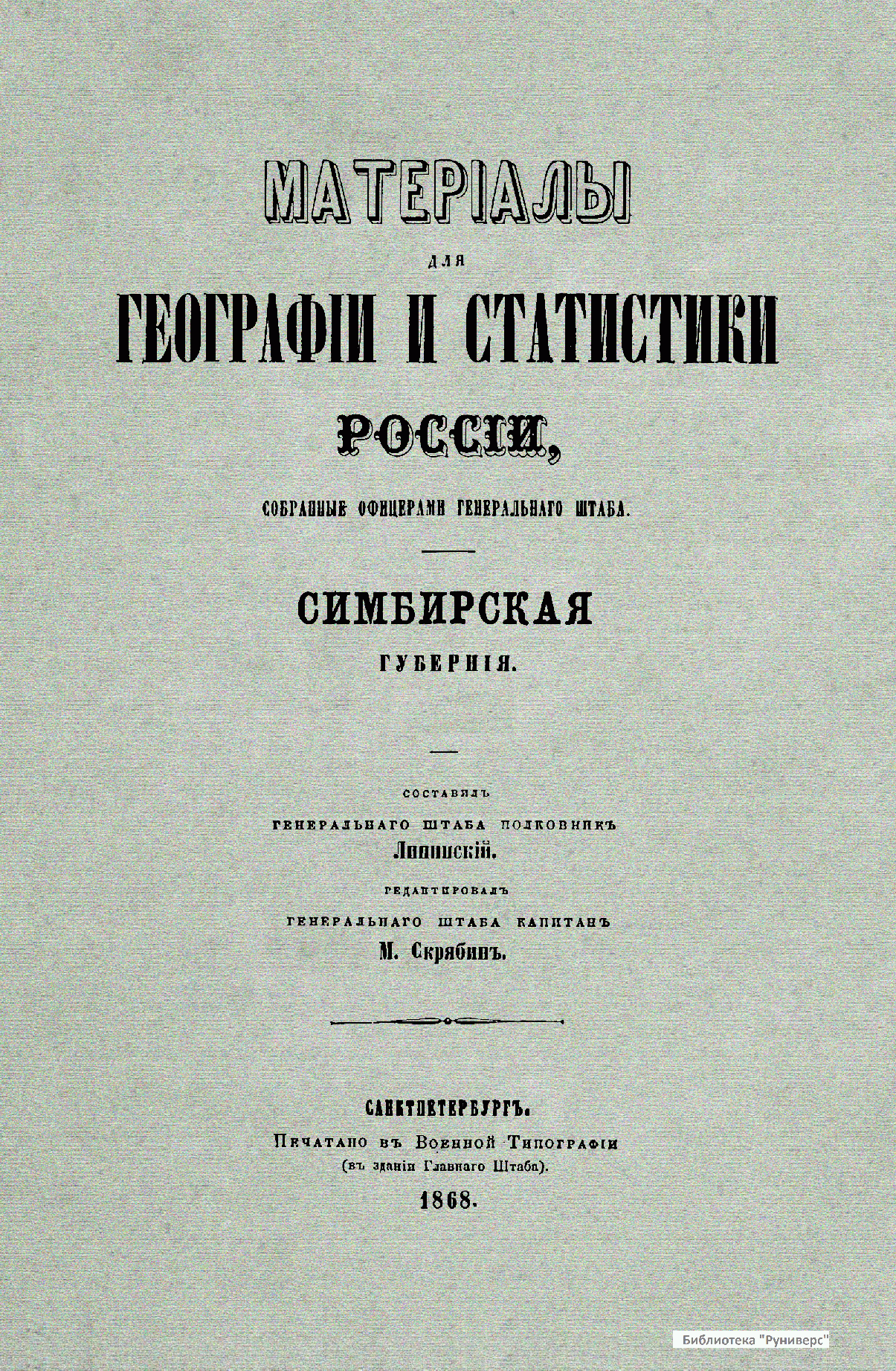 Материалы для географии и статистики России, собранные офицерами Генерального штаба. Симбирская губерния. Часть 1