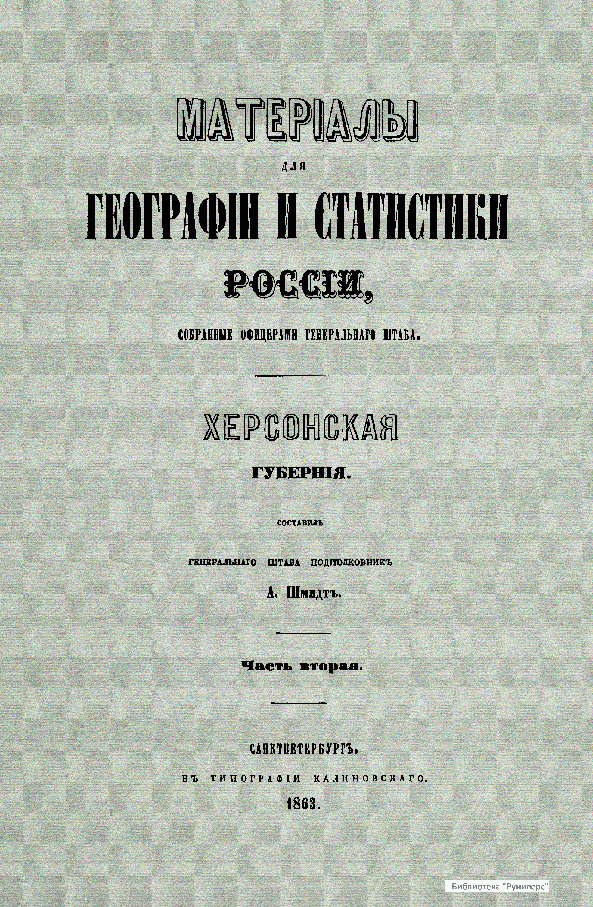 Материалы для географии и статистики России, собранные офицерами Генерального штаба. Херсонская губерния. Часть 2