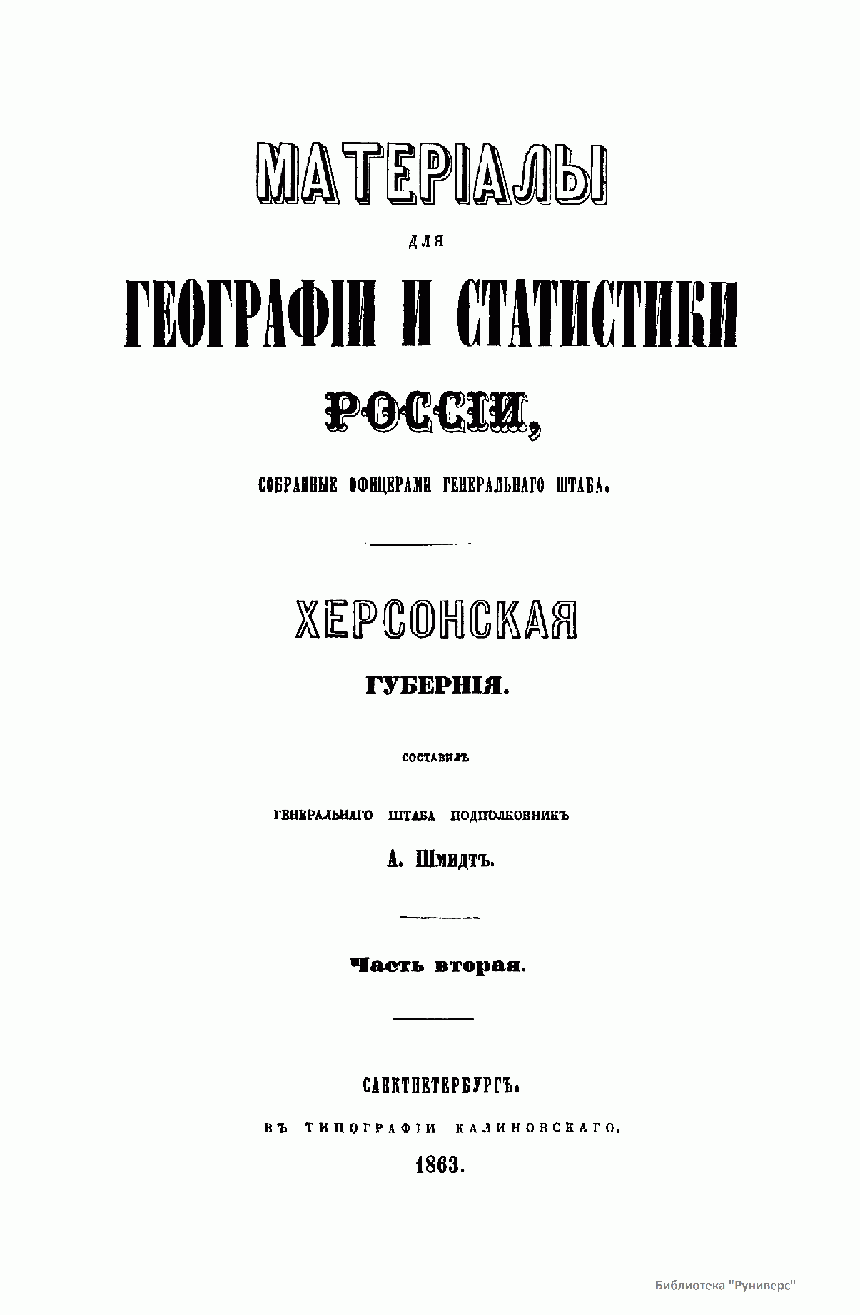Матерiалы для географiи и статистики Россiи, собранные офицерами Генеральнаго штаба. Херсонская губернiя. Часть 2