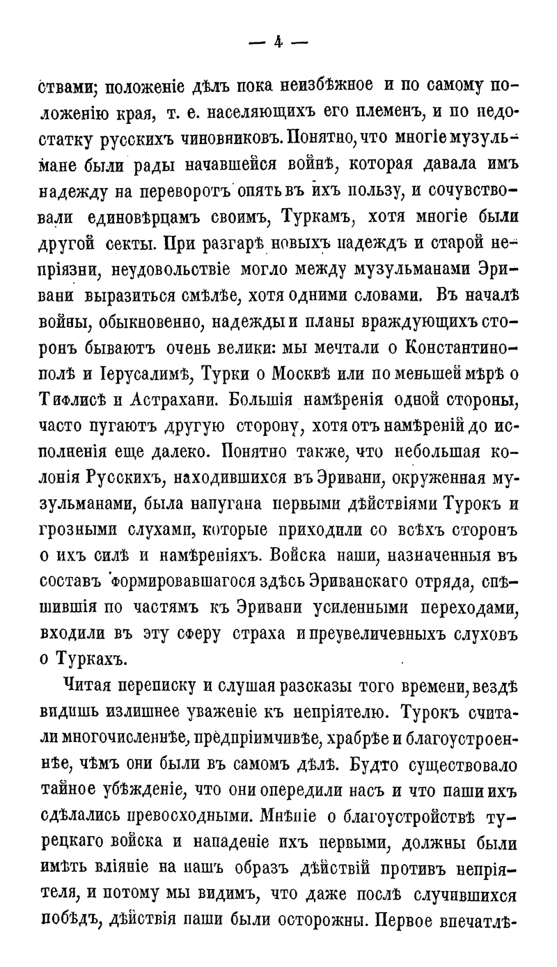 Подводя итоги, автор отдает дань историческому прошлому турок, которые «совершали прежде великие дела», и их владычество было «полезно тому краю, которым они овладевали», и говорит о том, что ныне у турецкого войска нет духа, самолюбия и отечества, на войне ему предстоят потери, лишения и смерть, а турецкое правительство отжило своё время, находится в опасности пасть и погибнуть.