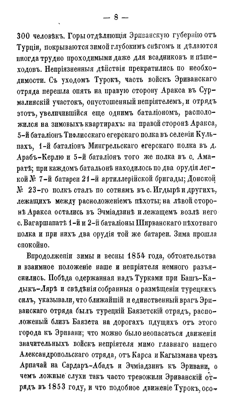 Автор книги, генерал-майор М. Лихутин, рассказывает о военных действиях русских в азиатской Турции, вызванных грабительским вторжением турок в российскую пограничную Эриванскую губернию в 1853 году. Эта губерния в то время была населена армянами григорианского вероисповедания – самыми древними жителями этих мест, и мусульманами разных племен – персами, татарами, курдами, которые пришли в разные времена как завоеватели и основались на развалинах древнего армянского царства. Прошедшие века накопили между этими народами много неоплаченных взаимных оскорблений, поддерживали дикие привычки, склонность к грабежу и насилиям, здесь было труднее, чем во внутренних русских губерниях, сохранить справедливое управление. Турецкое вторжение показало сомнительное положение края и возможность многочисленных волнений.