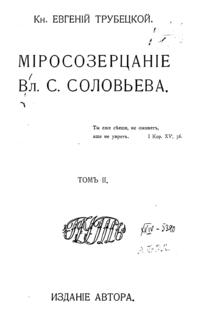 Двухтомный труд кн. Е. Н. Трубецкого – результат осмысления короткой жизни и интенсивного творчества русского философа, богослова, поэта и публициста