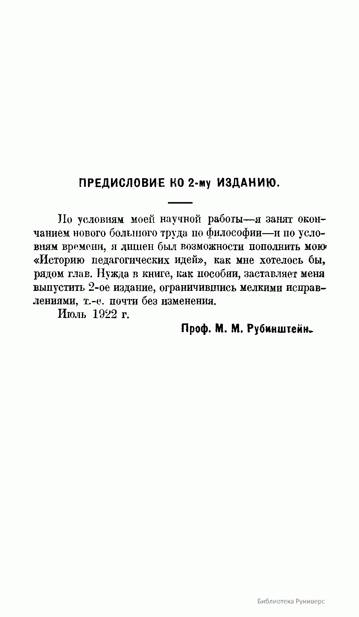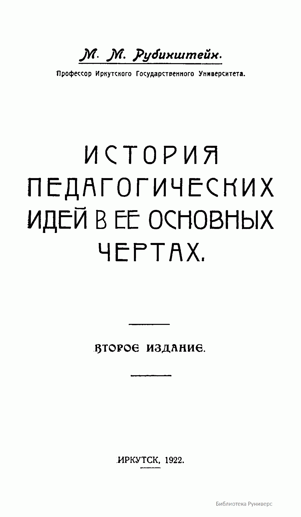 Книга "философа образования" М.М.Рубинштейна предназначена служить пособием к курсу истории педагогических идей, являясь своеобразным введением к непосредственному чтению классиков педагогики и систематической педагогики. В основу композиции этого учебного пособия положена "история идей", задача которой учить современников исходя из уже имеющегося в прошлом богатству философско-педагогических идей.