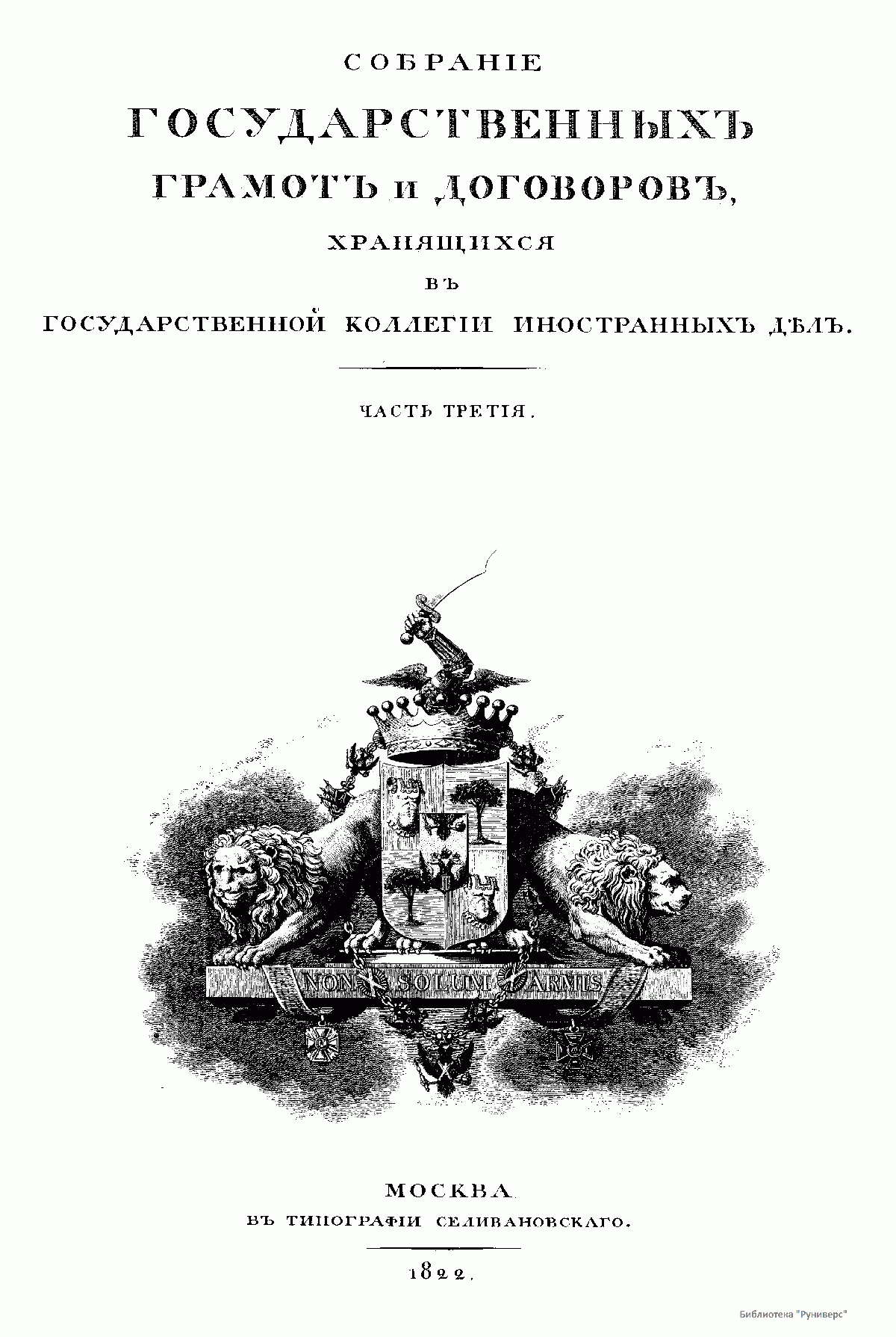 Собрание государственных грамот и договоров, хранящихся в государственной коллегии иностранных дел. Часть третья