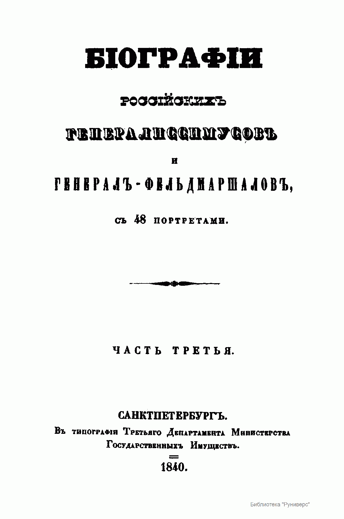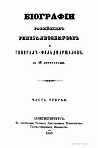 Бiографiи россiйскихъ генералиссимусовъ и генералъ-фельдмаршаловъ съ 48 портретами. Часть третья
