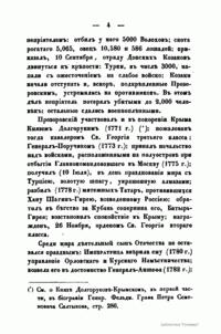Биографический словарь российских генералиссимусов и генерал-фельдмаршалов, составленный видным писателем и историком Д.Н. Бантыш-Каменским и изданный им в период его творческого и служебного расцвета – к началу 1840-х гг. Как это не парадоксально, в императорский период отечественной истории, а тем более в течение семи десятилетий советской истории, книга Бантыш-Каменского не получила достойной оценки и более не издавалась. Особую популярность это фундаментальное историко-художественное произведение современника А.С. Пушкина получило лишь в конце 1980-х годов, а в 1991 г. массовым тиражом были выпущены в свет 1-я и 2-я части репринтного издания. В своем предисловии автор справедливо отмечает, что высшие воинские звания в России были учреждены Петром Великим в 1700 г. К моменту подготовки данного издания, в 1839 г., в истории России насчитывалось три генералиссимуса: (печально известный по разгрому русских войск под Нарвой наемный военный специалист герцог де Крои, принц Антон Ульрих Брауншвейг-Люнебургский (отец младенца-императора Ивана VI) и блестящий полководец А.В. Суворов, а также сорок восемь генерал-фельдмаршалов. Помимо этого исключением служат два наемных иностранца, удостоившихся уникального для России звания генерал-фельдмаршал-лейтенанта. Оно было присвоено барону Г. Б. Огильви (1702) и Генриху Гольцу (1707), вслед за этим уволенных с российской службы и впоследствии никогда не использовалось. В данное издание автор включил сорок одну биографию государственных деятелей, выдающихся военачальников и полководцев императорской России, а также лиц, получивших это звание в качестве особой почести. Каждый биографический очерк написан в разные годы и имеет различный объем материала. Сами же очерки распределены по царствованиям: от Петра Великого до Александра I.