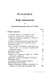 Издание дополнено разъяснениями по судебной медицине и административным взысканиям за нарушение аптекарского устава,,. Книга предназначалась для фармацевтов, врачей, чиновников медицинского ведомства и юристов, служа справочником по всем вопросам аптечного управления и практики в Российской империи.