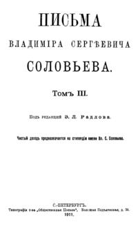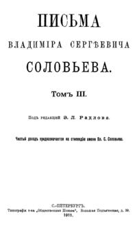 Собрание писем выдающегося русского религиозного мыслителя и поэта подготовлено к печати историком философии Эрнестом Радловым, который совместно с Владимиром Соловьёвым редактировал философскую часть словаря Брокгауза и Ефрона.