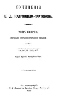 Сочинения В.Д. Кудрявцева-Платонова. Том II. Выпуск 1.
