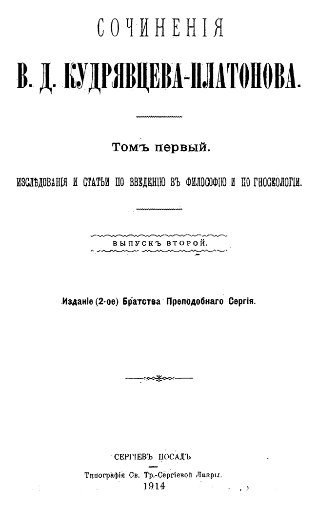 Сочинения В.Д. Кудрявцева-Платонова. Том I. Выпуск 2.