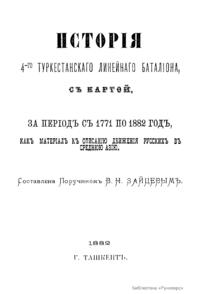История 4-го Туркестанского линейного батальона, с картой, за период с 1771 по 1882 год, как материал к описанию движения русских в Среднюю Азию