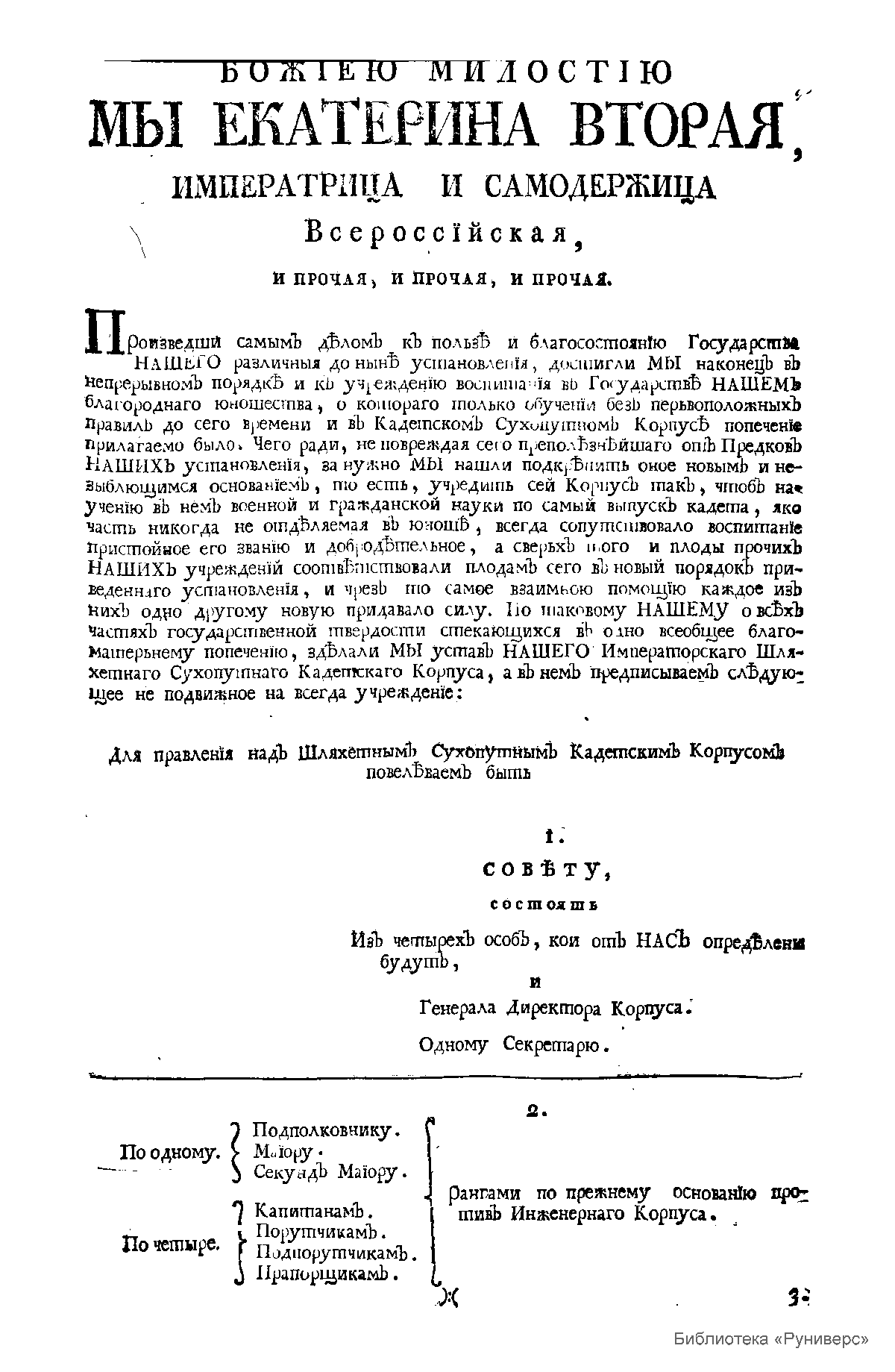 Устав императорского Шляхетного сухопутного кадетского корпуса