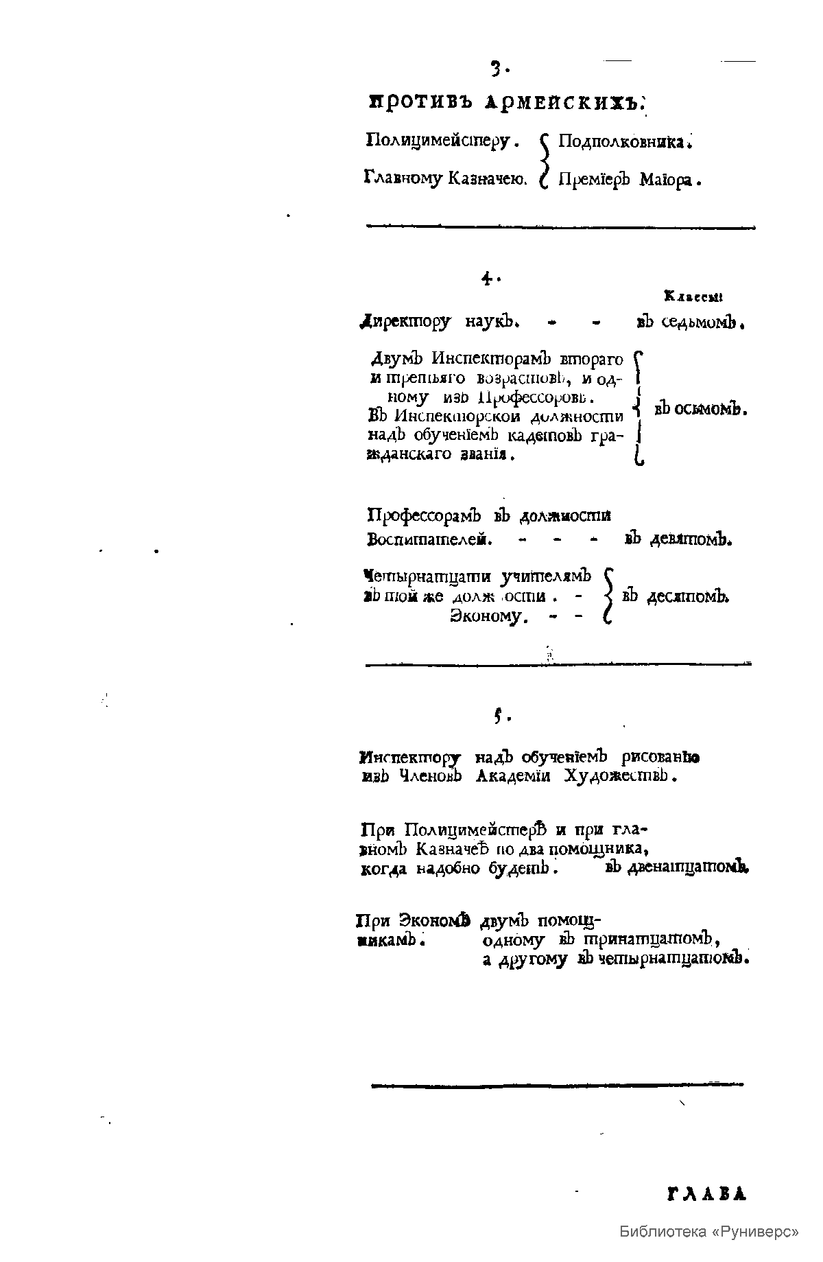 Вниманию читателей представлено первое издание Устава Императорского сухопутного шляхетного кадетского корпуса (под разными названиями – 1732 – 1918 гг.), который было составлен в 1766 г. его шефом, генералом-поручиком И.И. Бецким. Устав вводил 5 возрастов, каждый состоял из 5 отделений, где обучались и дворянские дети, и гимназисты - то есть дети разночинцев. Из гимназистов предполагалось готовить преподавателей для корпуса. Дворяне и разночинцы должны были воспитываться и обучаться на равных правах. Этим Бецкой намеревался сблизить представителей молодого поколения различных сословий и исключить в будущем разногласий между ними. Устав кадетского корпуса устанавливал основы не только профессионального обучения, но и нравственного воспитания кадетов, что отвечало принципам Эпохи Просвещения.