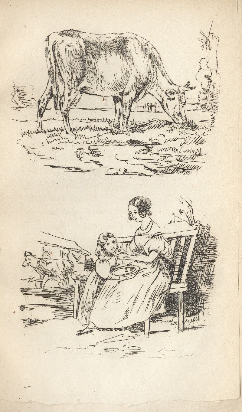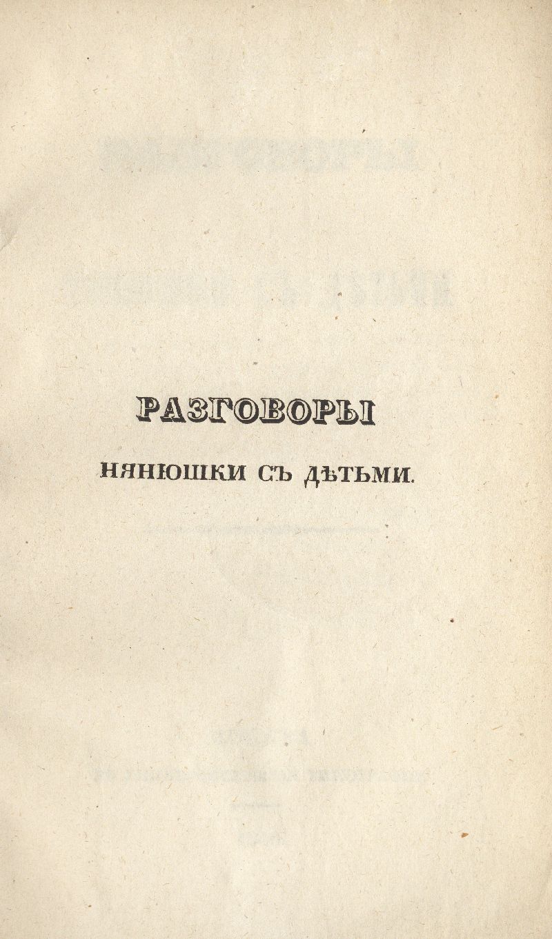 Издание «Разговоры нянюшки с детьми» – типичный пример познавательной литературы для детей второй половины XIX века. Такого рода книги охотно издавала Университетская типография. «Разговоры нянюшки...» – это десять небольших рассказов: «Корова», «Овца», «Петух», «Птица» и др., которые знакомят детей в основном с представителями животного мира, с их повадками и образом жизни. Все рассказы объединены героями – маленькими детьми: мальчиком Карлом и девочкой Луизой. Каждый рассказ сопровождает иллюстрация. Автор называет на обложке изображения «виньетками», но это – полноценные иллюстрации, призванные наиболее правдиво и точно изобразить предмет каждого рассказа няни.
