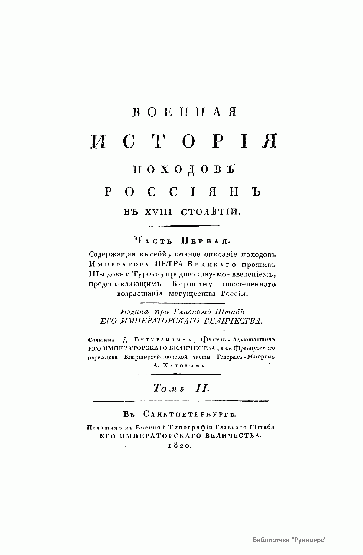 Военная история походов россиян в XVIII столетии. Часть первая. Том II