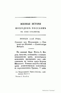 Военная исторiя походовъ россiянъ въ XVIII столѣтiи. Часть первая. Томъ II