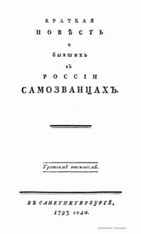 Краткая повѣсть о бывшихъ въ Россiи самозванцахъ