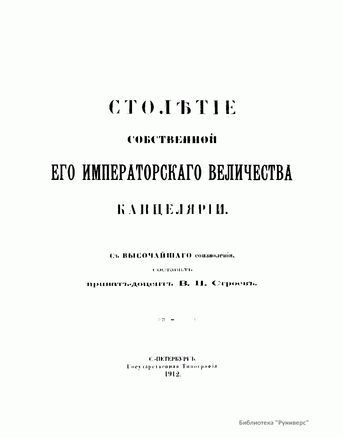 Столѣтiе собственной его императорскаго величества канцелярiи