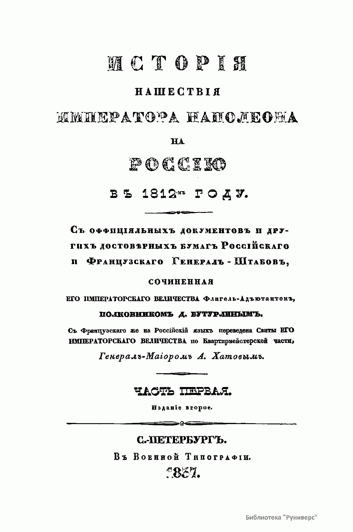 Исторiя нашествiя императора Наполеона на Россiю въ 1812 году