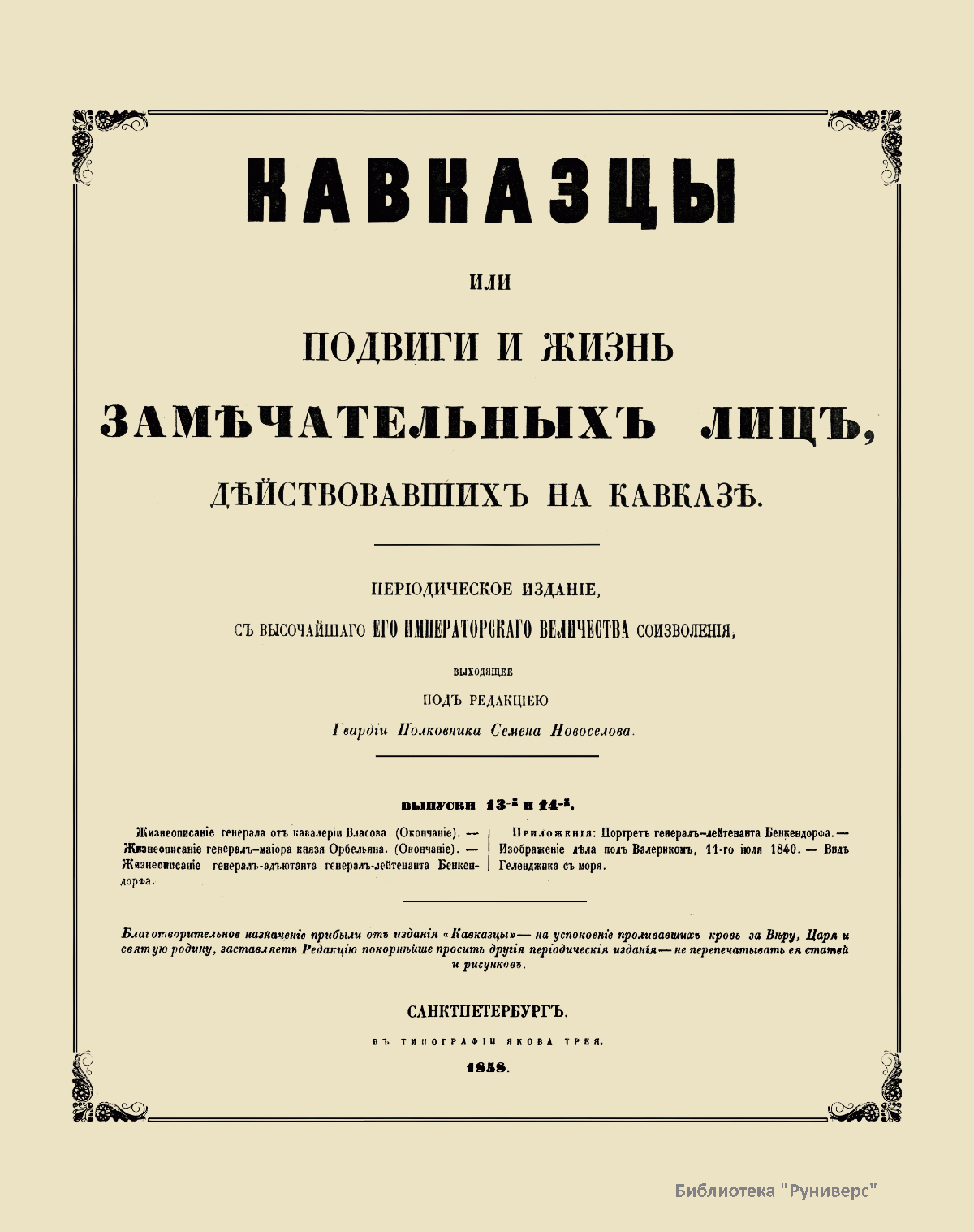 Кавказцы или подвиги и жизнь замѣчательныхъ лицъ дѣйствовавшихъ на Кавказѣ. Выпуски 13-36