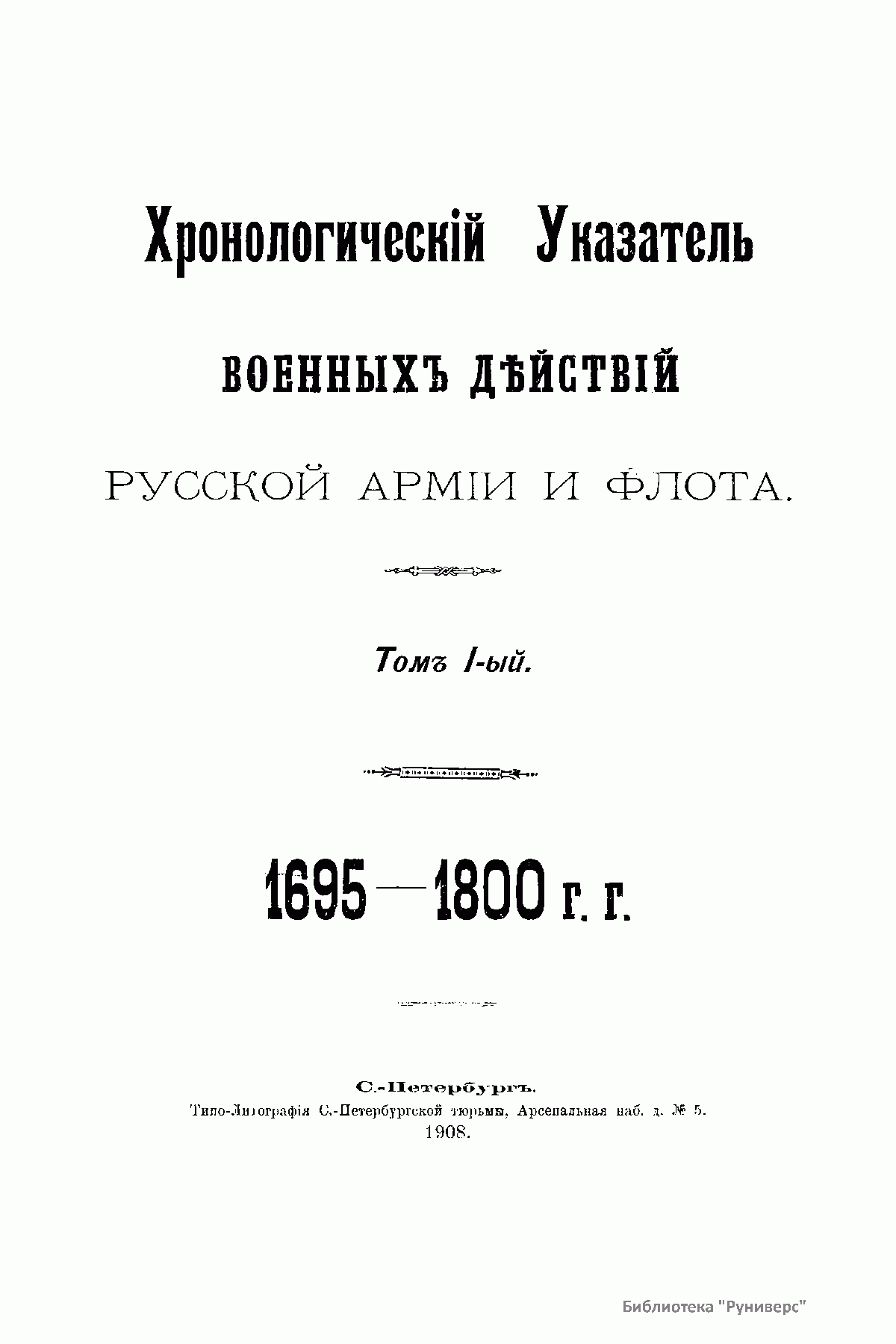 Хронологическiй Указатель военныхъ дѣйствiй русской армiи и флота