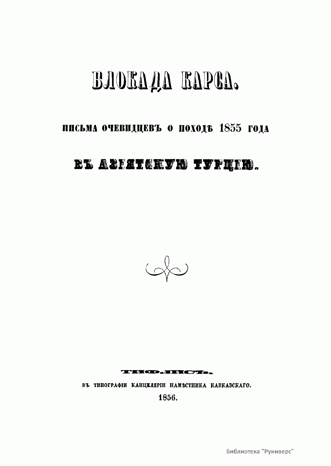 Блокада Карса. Письма очевидцевъ о походѣ 1855 года въ Азiатскую Турцiю