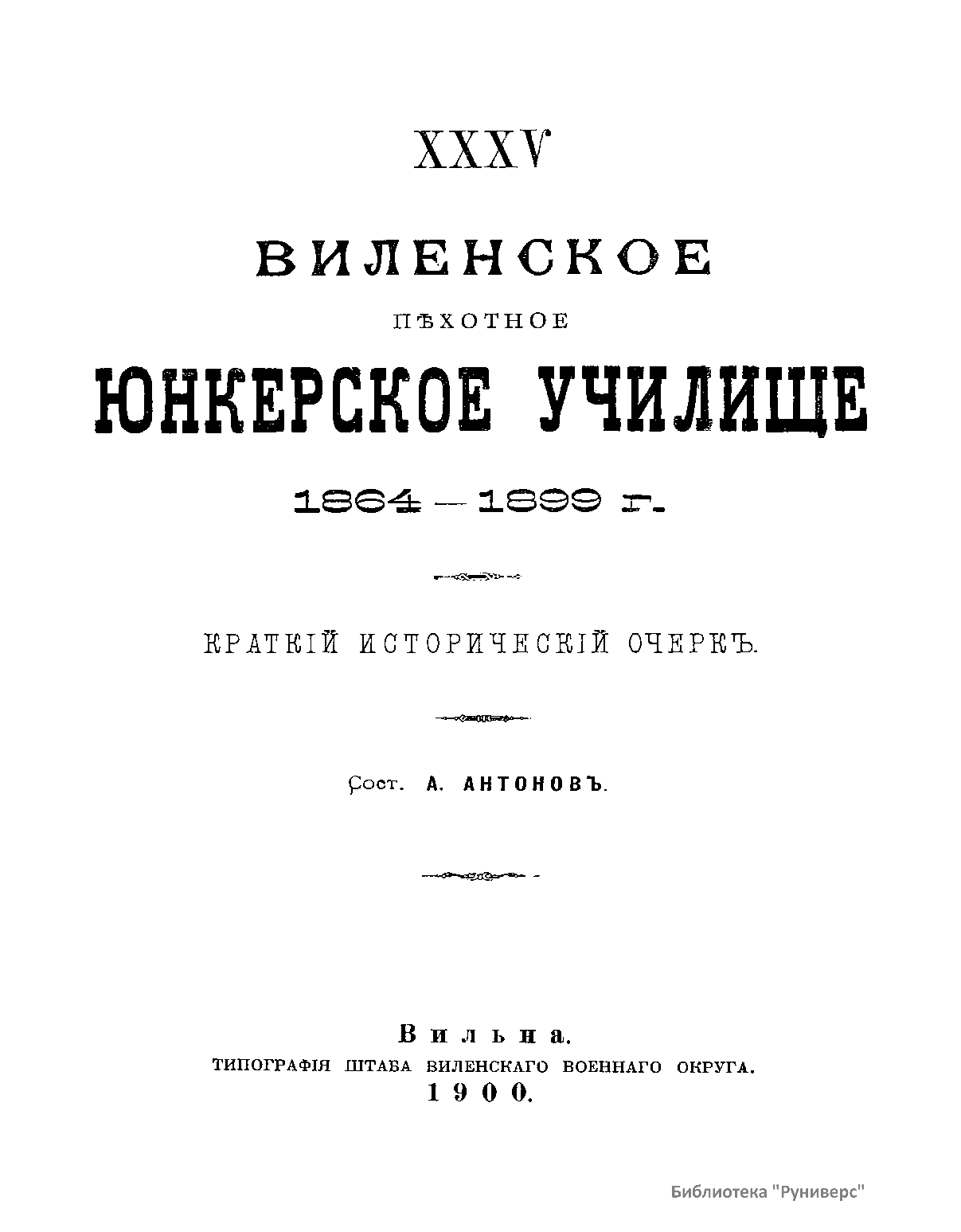 XXXV Виленское пѣхотное юнкерское училище 1864-1899 г.