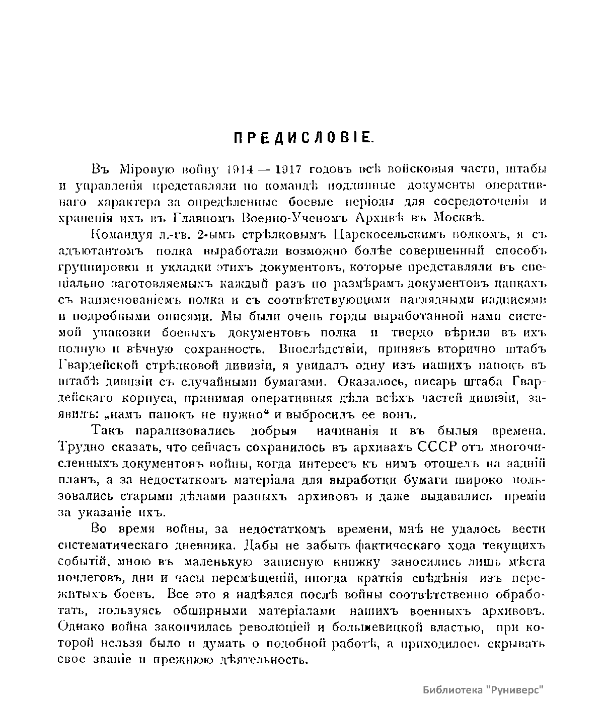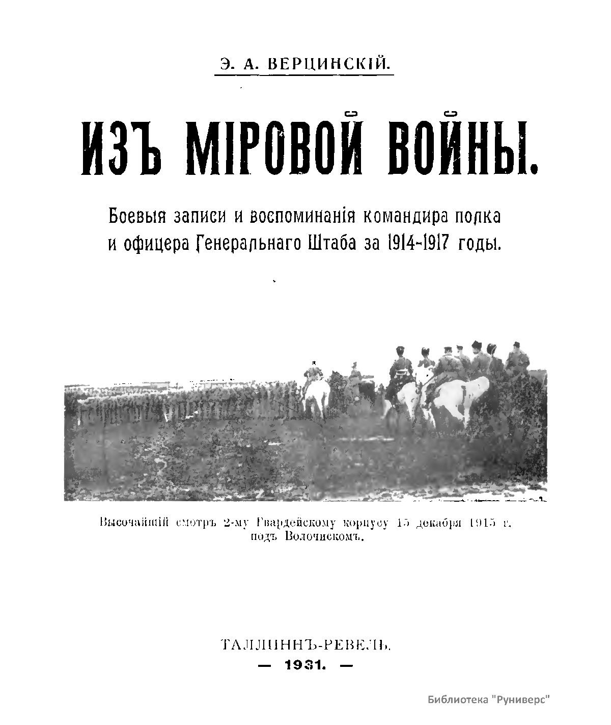 Книга воспоминаний бывшего командира Лейб-гвардии 2-го стрелкового Царскосельского полка (с 22 января 1915 г. по 2 июня 1916 г.) и начальника Штаба Гвардейской стрелковой дивизии (с 11 сентября 1916 по 18 февраля 1917 г.) генерал-майора Эдуарда Александровича Верцинского подробно повествует о боевом опыте автора в период Первой мировой войны с 1914 по 1916 год включительно. Им последовательно описаны все боевые операции дивизии на Западном фронте, анализируется работа штаба и отдельных командиров. Книга написана в эмиграции в 1931 г. в Эстонии и была издана в Таллине. Э.А. Верцинский в гражданской войне не участвовал. Однако после вхождения Эстонии в состав СССР автор данной книги был арестован в сентябре 1940 г. и расстрелян 28 февраля 1941 г. в Ленинграде.