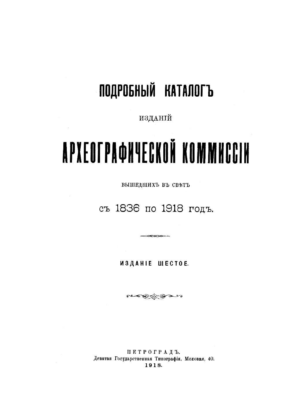 Плодами трудов Археографической комиссии стали многочисленные многотомные издания, которые включали в себя важнейшие документы по истории России. В 1918 году вышло шестое издание аннотированного каталога, наиболее полно отразившеевсе труды комиссии с 1836 года.