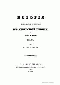 Исторiя военныхъ дѣйствiй в Азiятской Турцiи в 1828 и 1829 годахъ