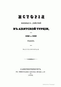 Исторiя военныхъ дѣйствiй в Азiятской Турцiи в 1828 и 1829 годахъ. Часть вторая