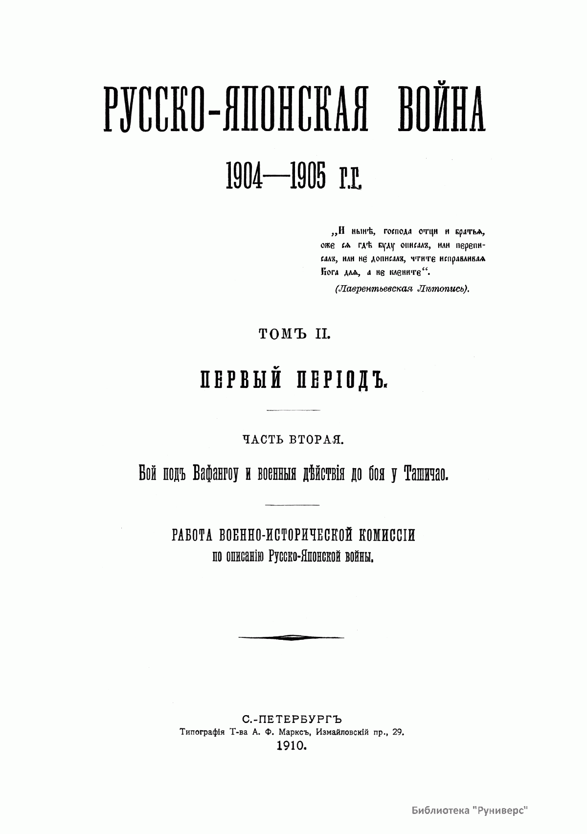 К началу 1910 г. работа была закончена, и в течение года была издана «Русско-японская война
