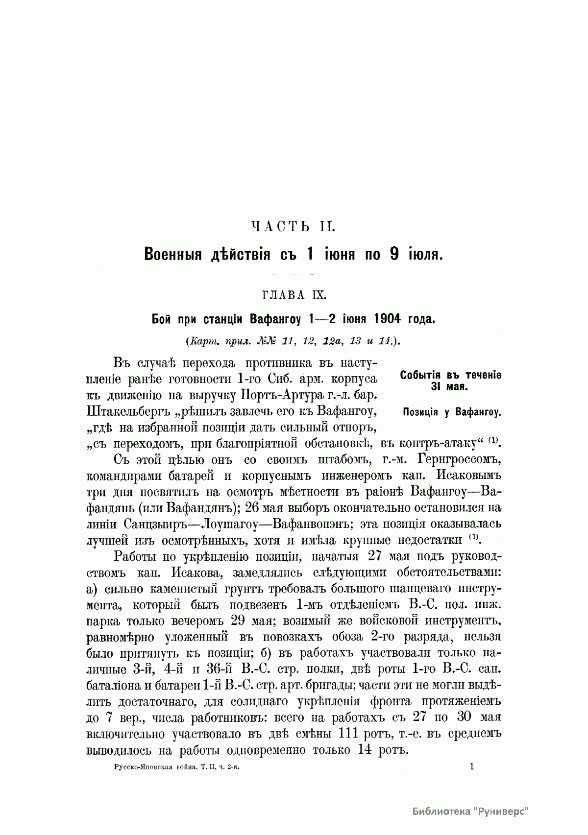 Русско-Японская война 1904-1905 гг. Том II. Первый период. Часть вторая. Бой под Вафангоу и военные действия до боя у Ташичао