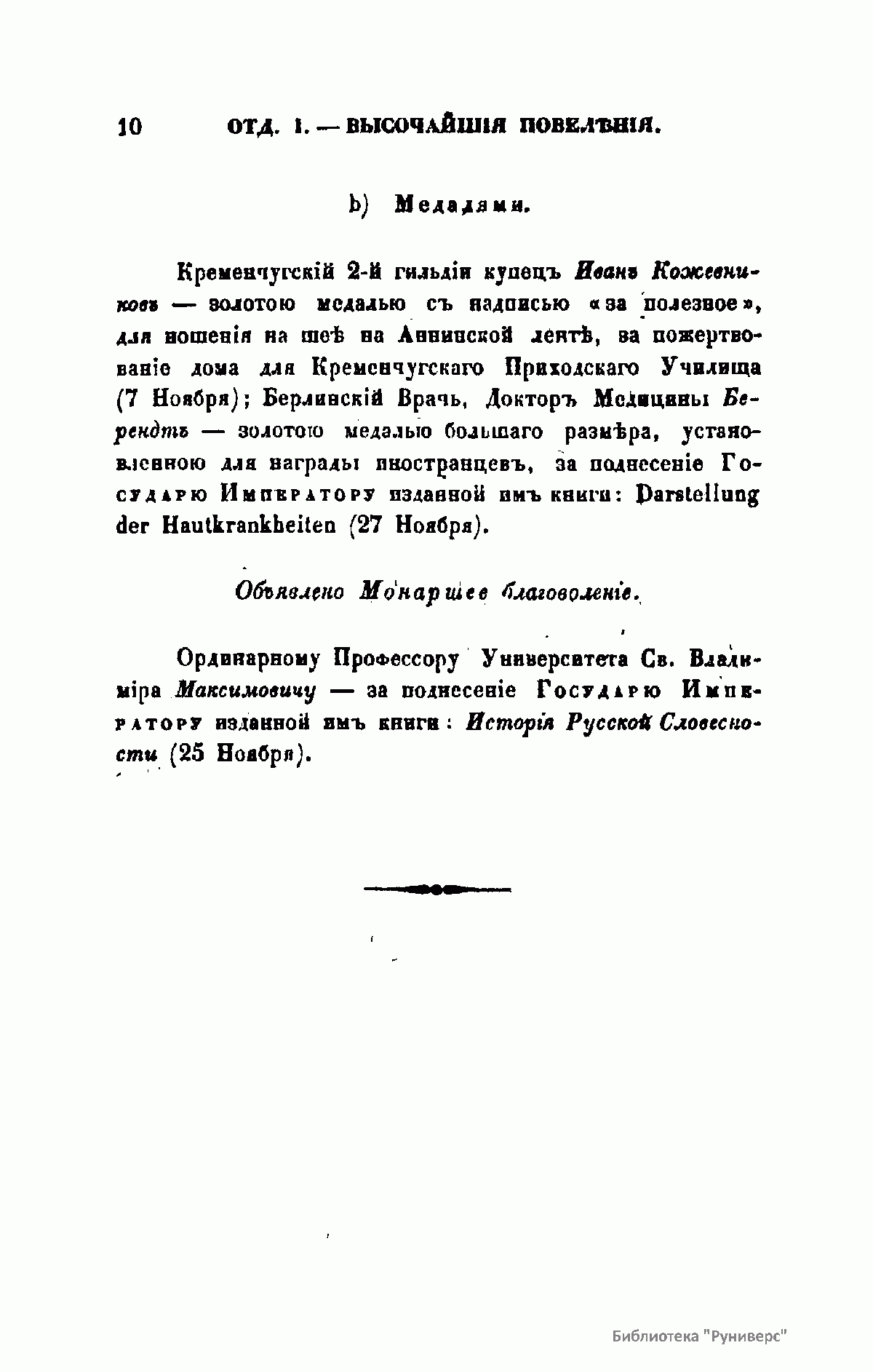 1. «Записки Департамента народного просвещения». Вышло в свет три книги этого издания – в 1825, 1827 и 1829-м годах.