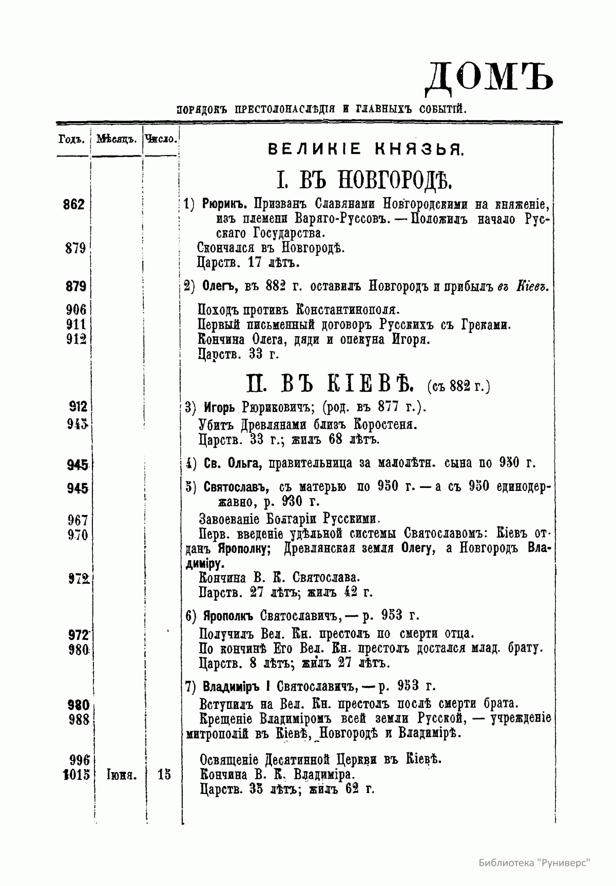 В книге опубликованы две таблицы. В них указан порядок престолонаследия Дома Рюриковичей и Дома Романовых до Александра II, а также сообщаются все основные события, происходившие при великих князьях и царях.