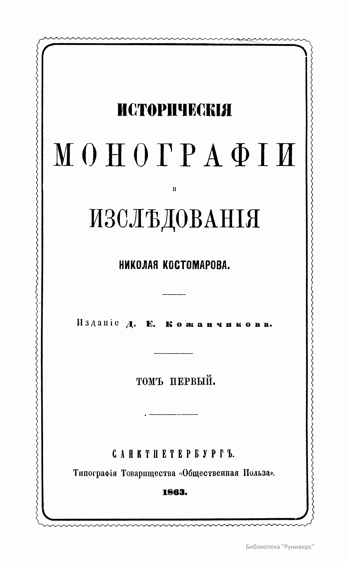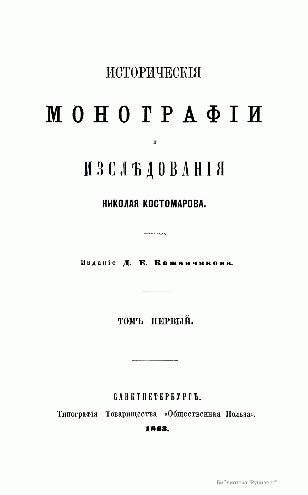 Историческiя монографiи и изслѣдованiя Николая Костомарова