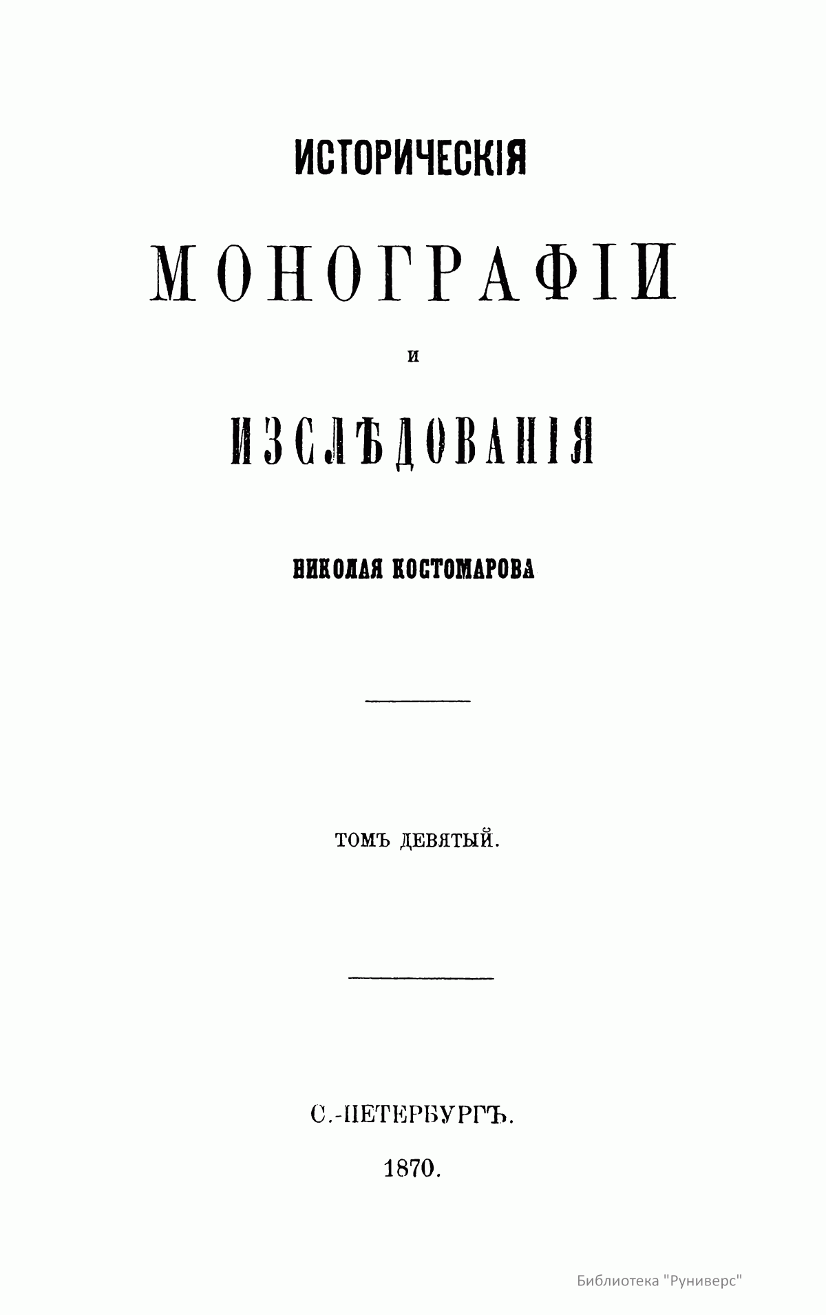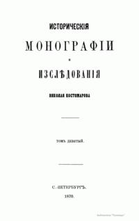 Историческiя монографiи и изслѣдованiя Николая Костомарова. Томъ девятый
