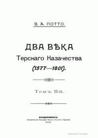 Труды выдающегося русского венного историка, генерал-лейтенанта Василия Александровича Потто (1836–1911), освещающие этапы прихода и становления русской власти в кавказском регионе, историю многолетних кавказских войн и развития казачества, обогатили русскую военную литературу и по праву считаются одними из лучших произведений кавказской тематики. Многие годы В. А. Потто собирал разрозненные документы, военные хроники и архивные материалы, чтобы отобразить общую картину драматических событий, определивших особую роль кавказских войн в истории российского государства. В 1896 г. В. А. Потто был назначен начальником военно-исторического отдела при Штабе Кавказского военного округа, где значительно расширил свою издательскую деятельность. Под его редакцией вышли «Утверждение русского владычества на Кавказе» в 8 томах, «Кавказский сборник», издававшийся в Тифлисе в 1876–1912 гг., «Памятники времен Кавказской войны», «Исторический очерк Кавказских войн от их начала до присоединения Грузии к России». «Два века терского казачества» последнее произведение В. А. Потто. В этом исследовании прослеживается роль терского казачества в истории Российского государства. Автор планировал подготовить трехтомное сочинение, но смерть помешала ему закончить задуманное, и в 1912 г. в свет вышли первые два тома издания.